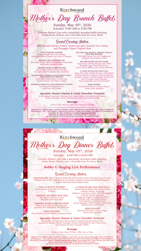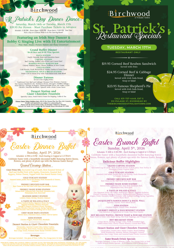 A true Polish Town landmark, The Birchwood of Polish Town in Riverhead, NY is a long-standing staple. Reimagined in 2014 by new owner Danielle Sessa, you’ll still find everything families have loved for over 80 years. The Birchwood is a local restaurant, pub, and tavern serving up traditional Polish dishes like pierogis and kielbasa, alongside other pub favorites like juicy burgers, fried seafood, pasta, salads, and more! We offer a wonderful catering venue that can host up to 250 guests, and we are handicap accessible.